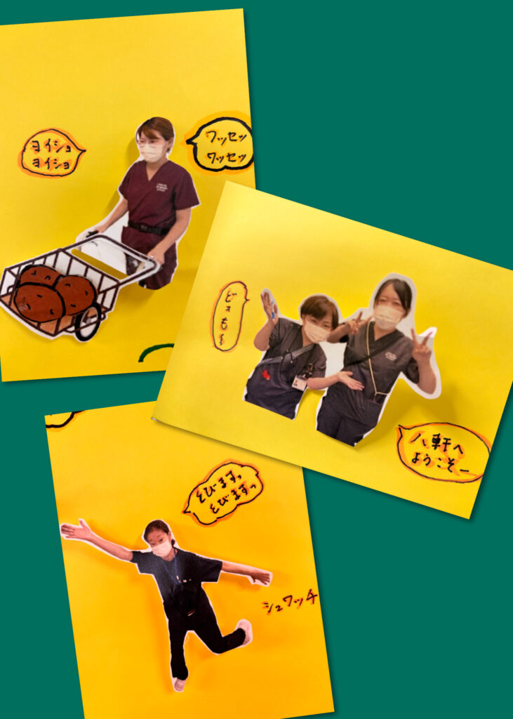 今回の八軒の壁面は職員の皆んなと利用者様の写真をパロディ風に楽しく加工して飾りましたよ!