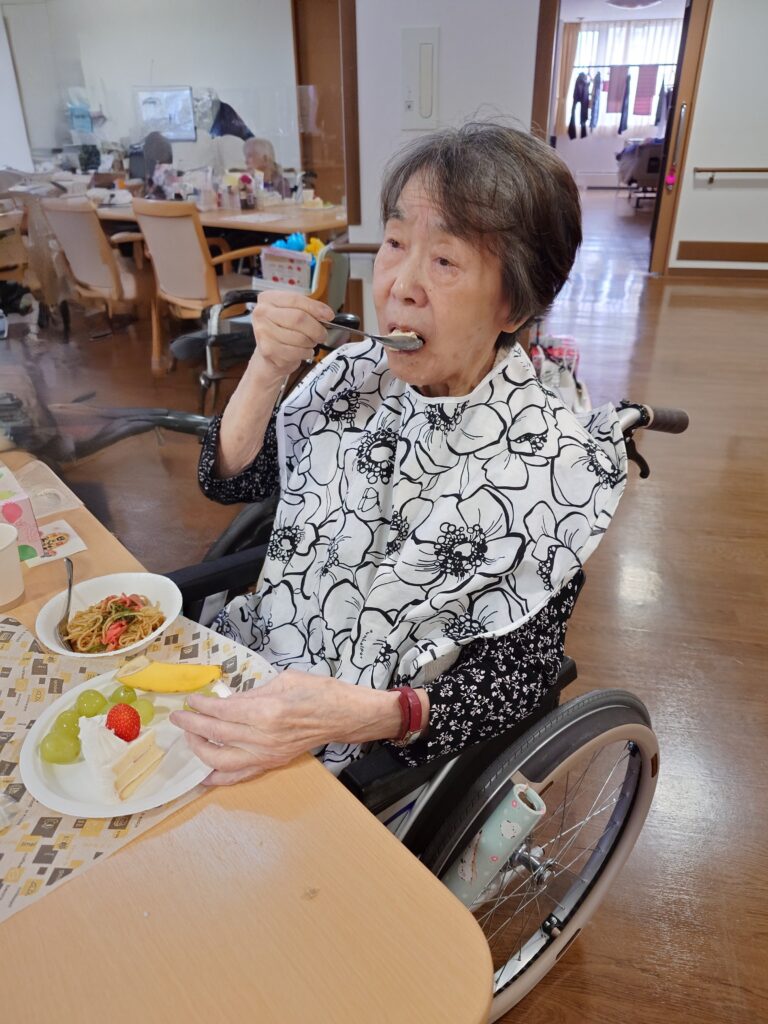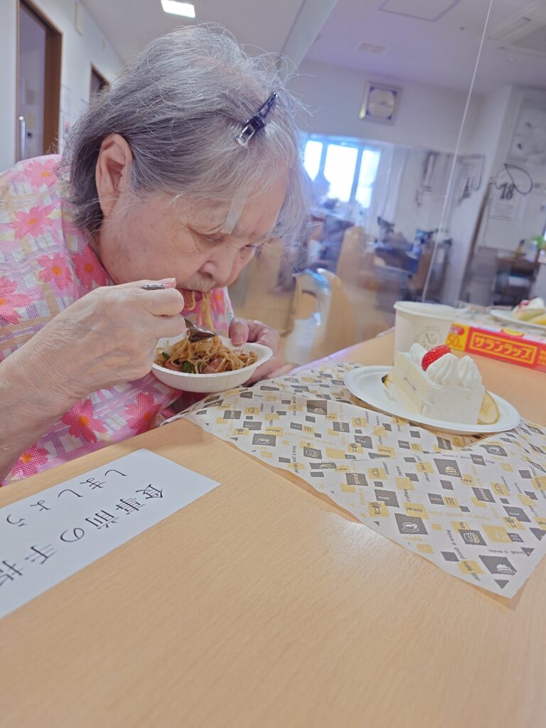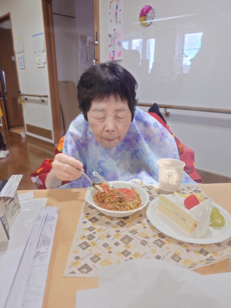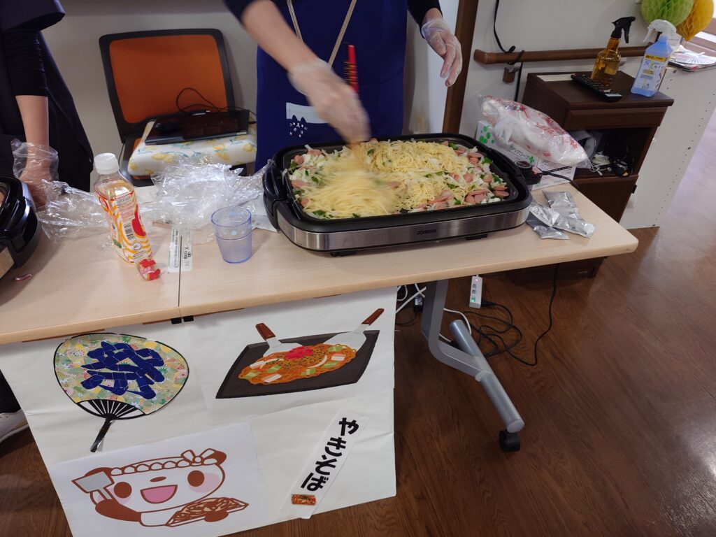 焼きそばとデザートにケーキがあり、皆様美味しそうに食べられていました。
