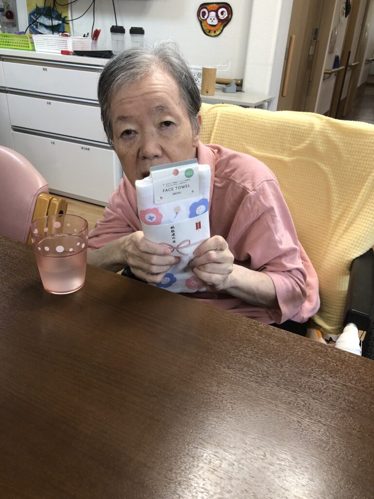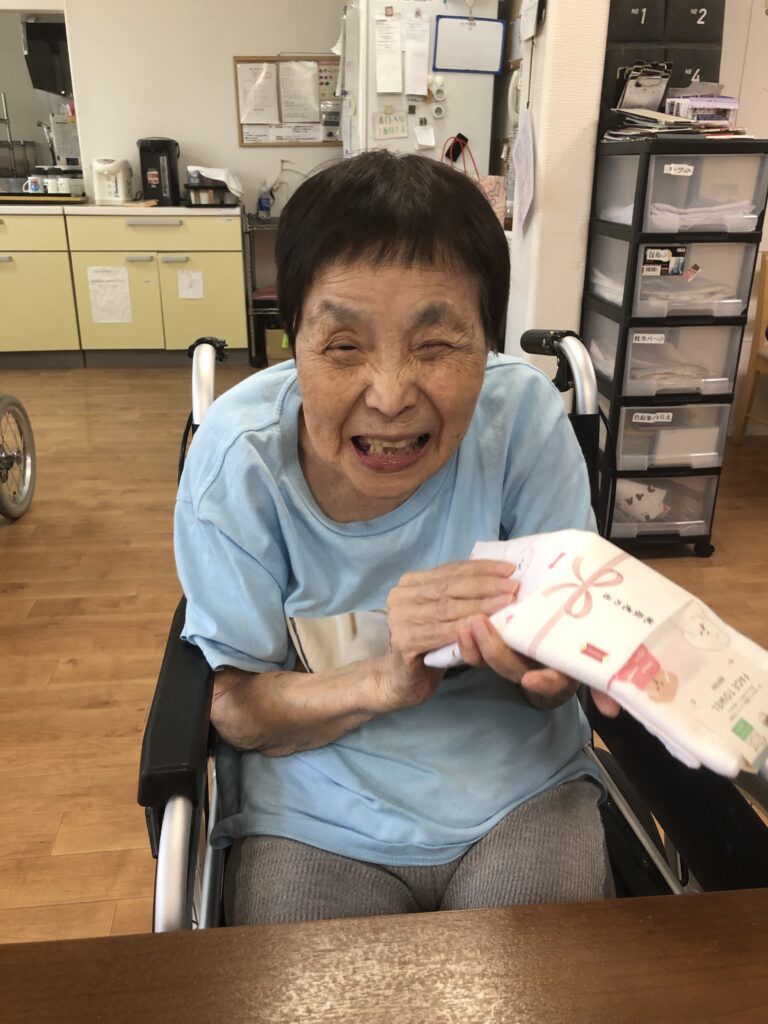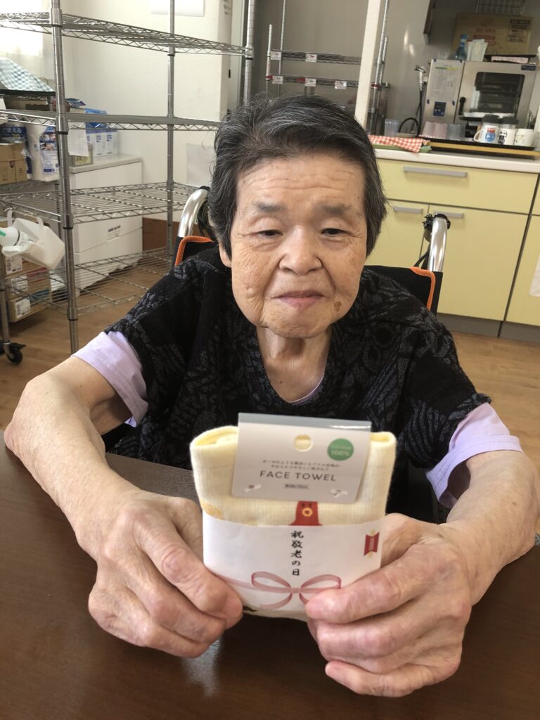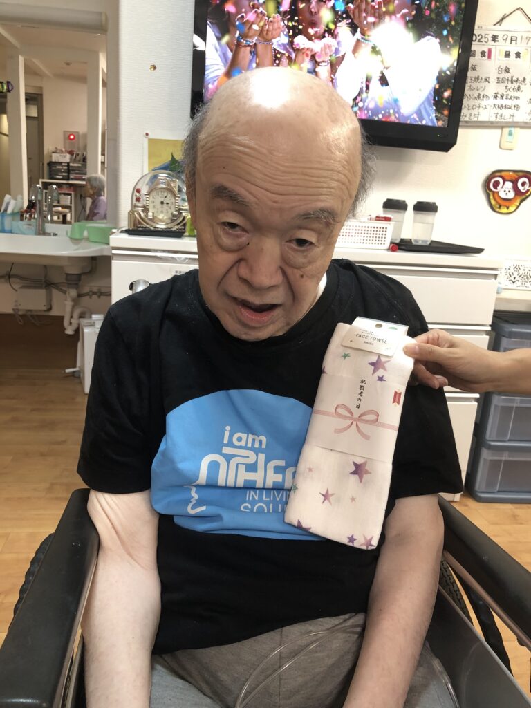 9月15日、敬老の日の、ささやかなプレゼントと美味しいお菓子でのお祝いの様子をお届けします。