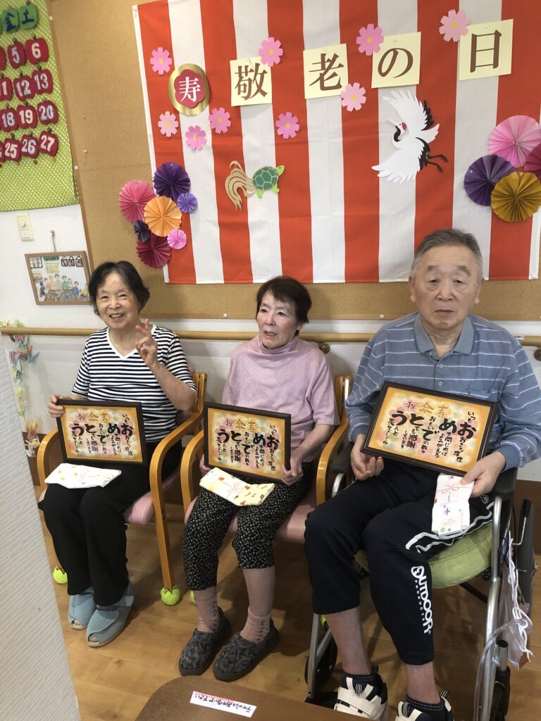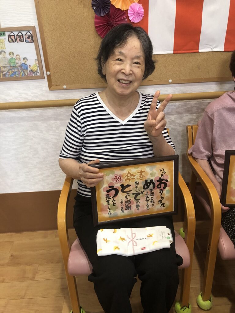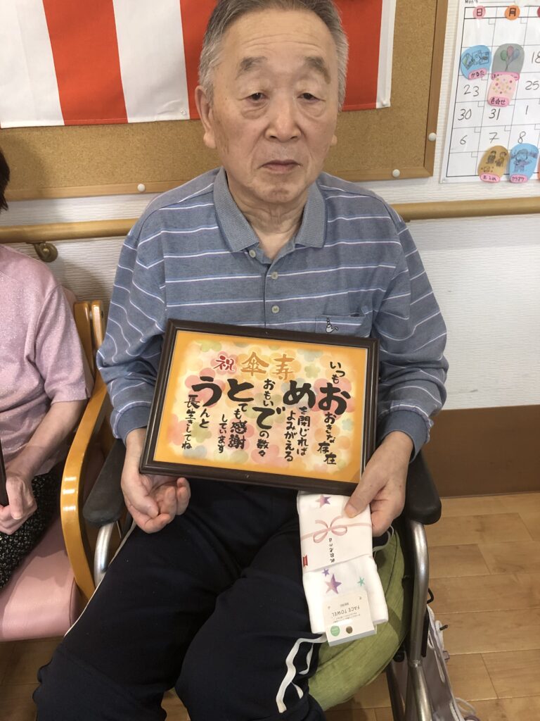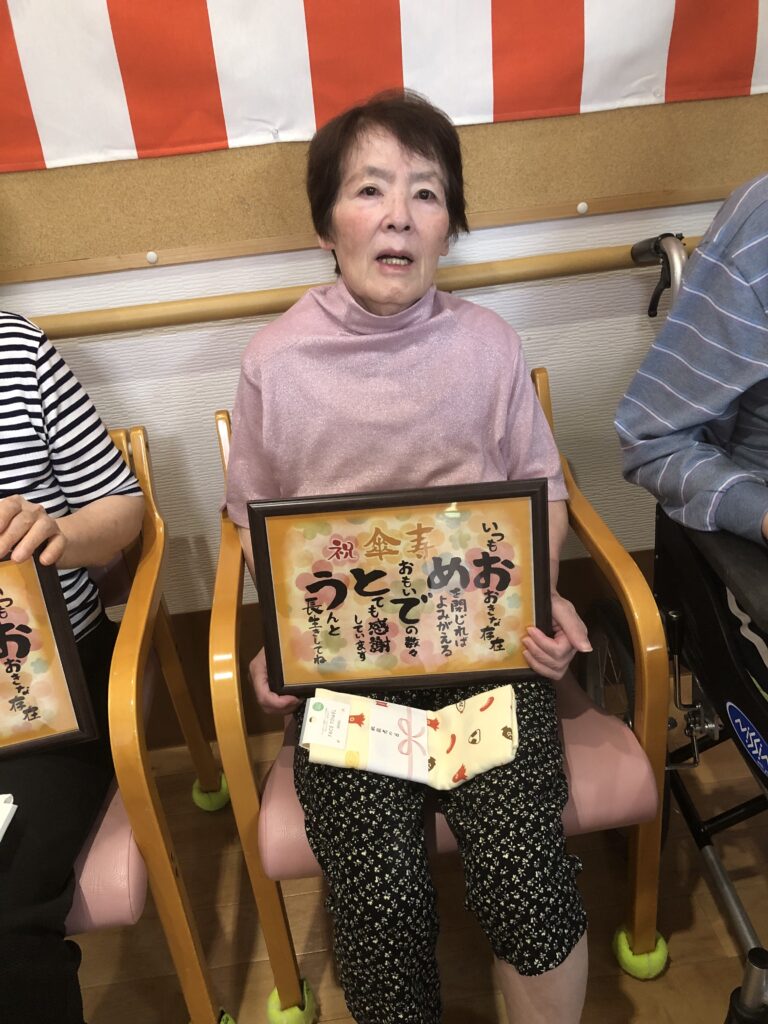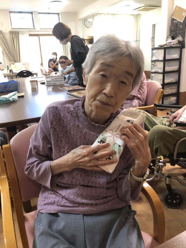9月15日、敬老の日の、ささやかなプレゼントと美味しいお菓子でのお祝いの様子をお届けします。