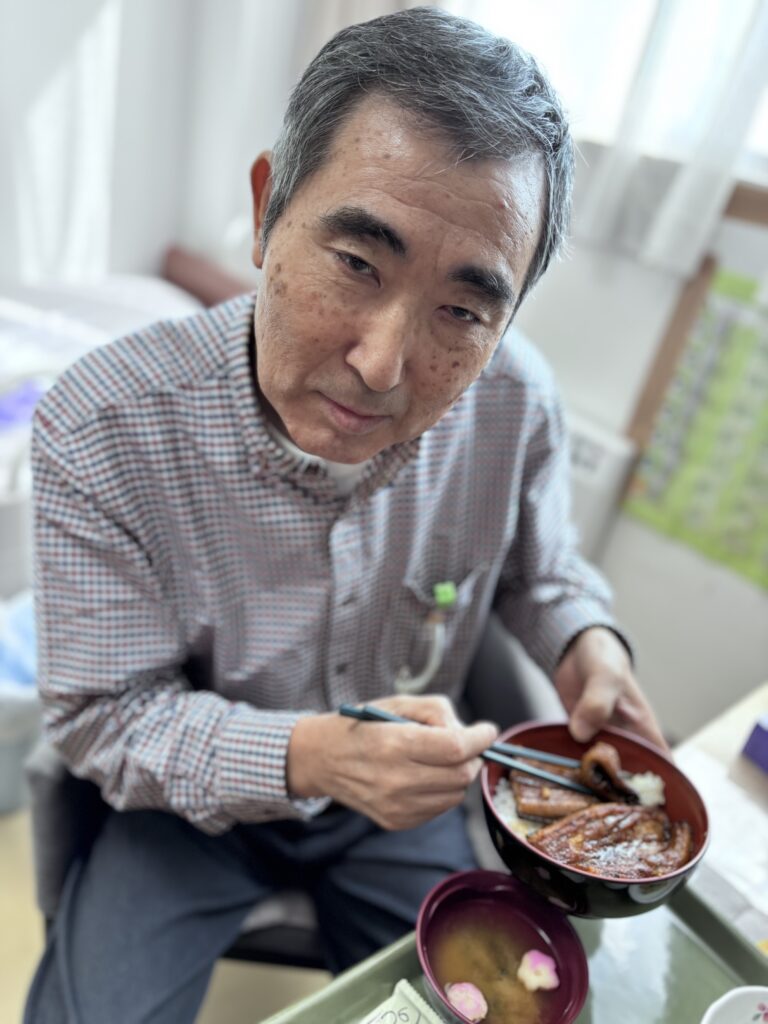 新しい入居者さんが入られて自己紹介をしながらおいしいものを食べていただきました。