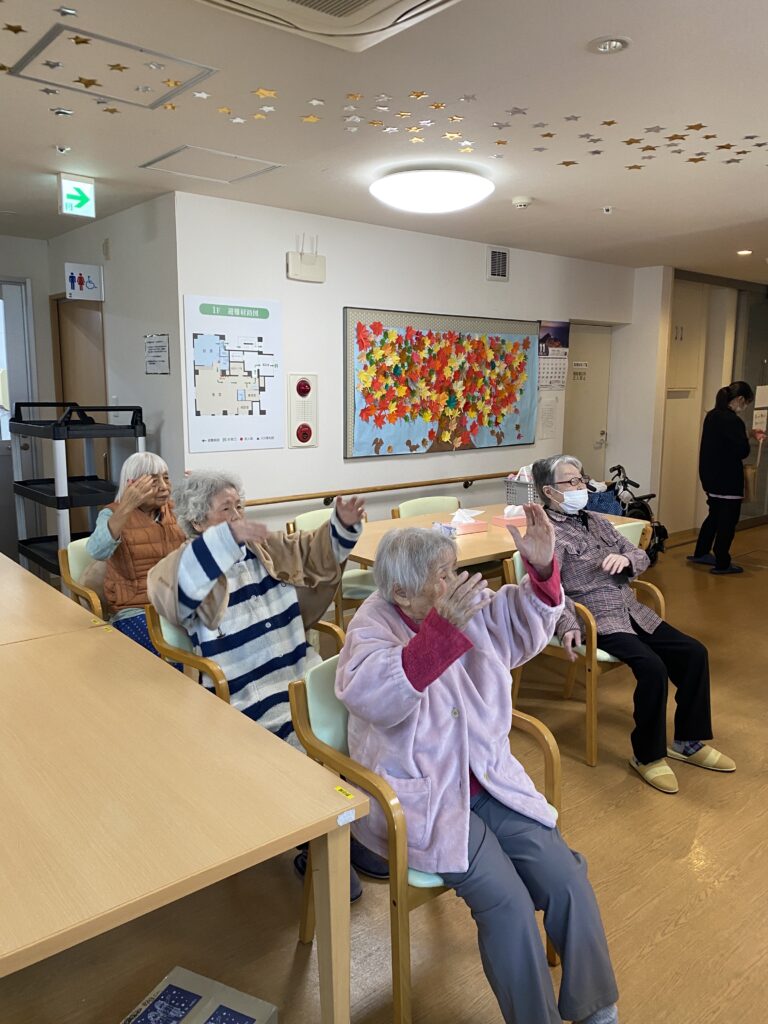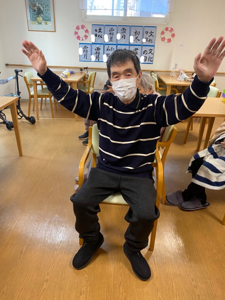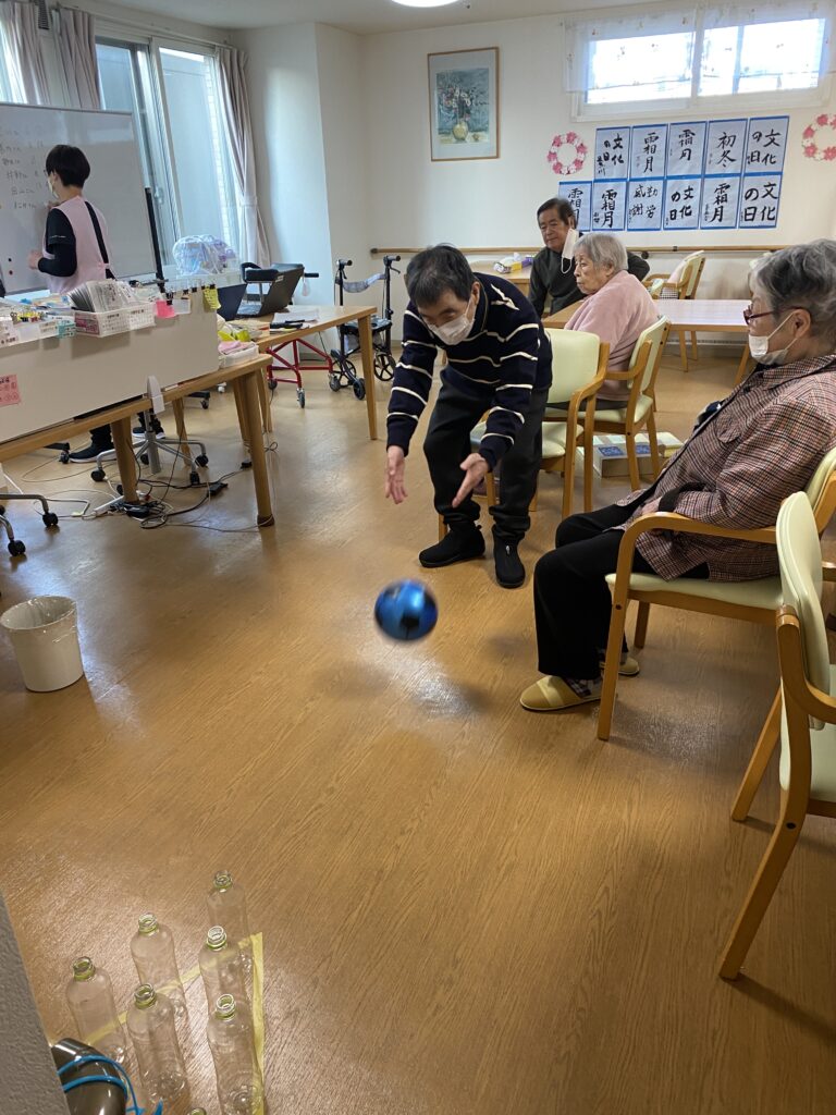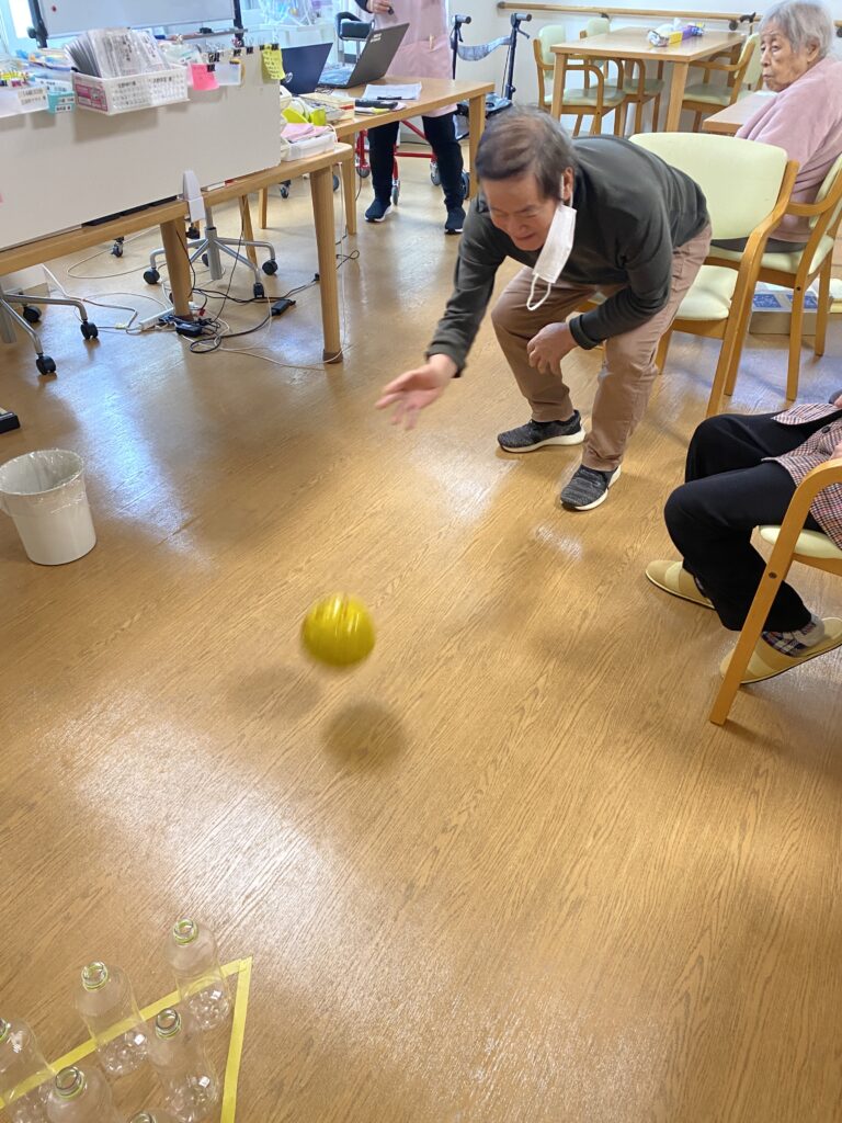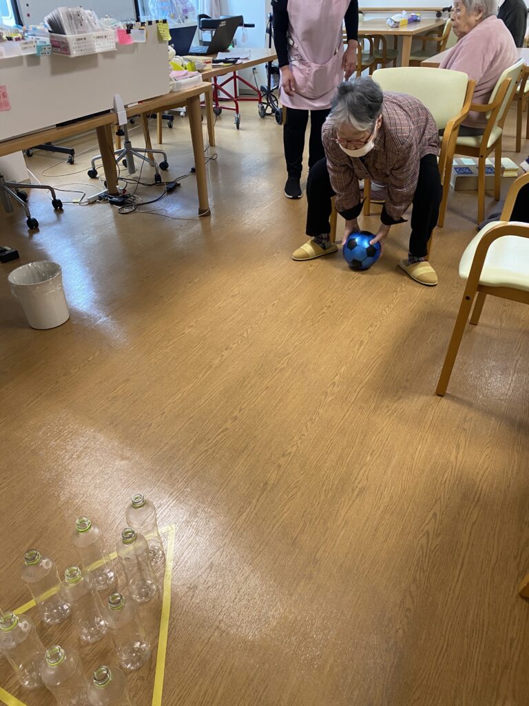 中央を狙って勢いよく投げたボールでピンが全て倒れて大喜び😊これから寒い冬がやって来ますが、皆さんも身体を動かして元気に過ごしましょう🍀
