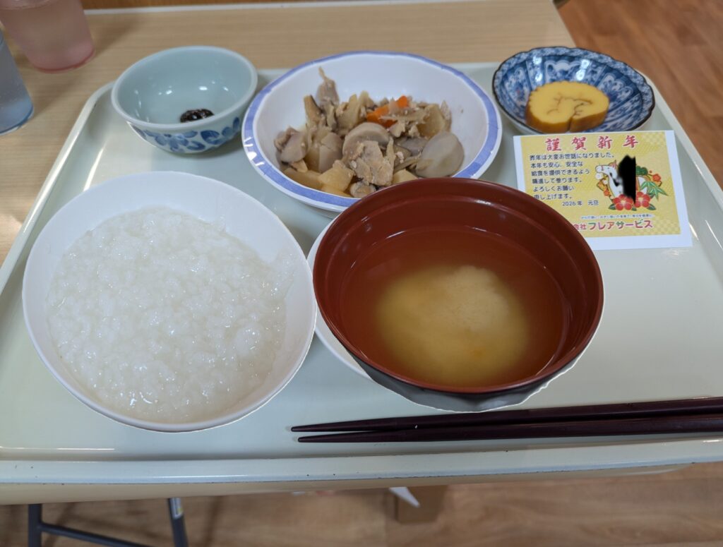 朝のメニューは、うま煮、伊達巻、昆布の佃煮でした