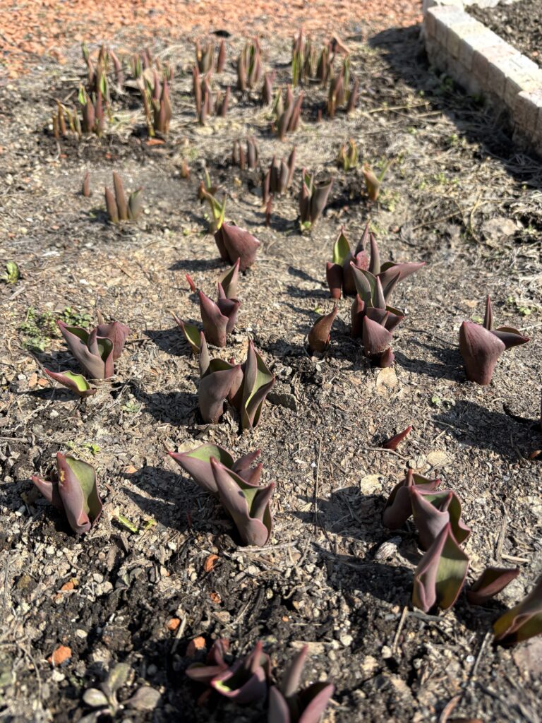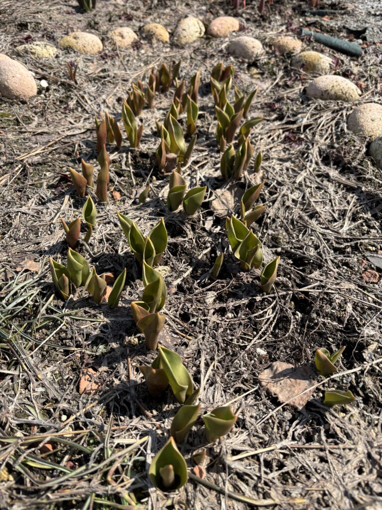 また2階の窓からはリハビリ中に花壇の様子を眺める方もいて土の中から顔を出したチューリップの芽に「春が来たね」と、季節の訪れを喜ばれるご様子が見られました。今年の花壇も華やかになるかなぁ💕