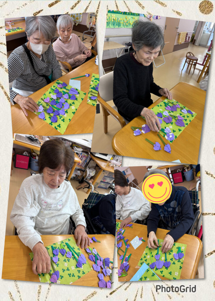また、天気の良い日には「春を探しに」外へ出て、花壇のチューリップの芽を見に行きました。小さな芽を見つけて「かわいいね」「もうすぐ咲くね」と、春の訪れを感じておられました。