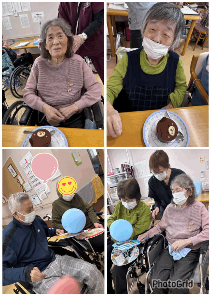4月のお誕生日会を兼ねて「風船団扇リレー紅白合戦」を開催しました。皆さま夢中になって取り組まれ、笑い声が響く楽しい時間となりました。イベントの後は、美味しいケーキを召し上がり、和やかなひとときを過ごされました。