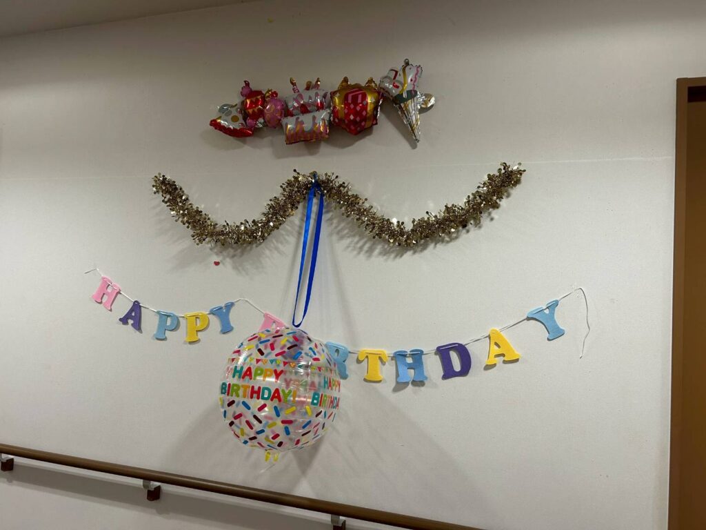 4月生まれの方の誕生会行なわれていました。少し照れながらも感謝の言葉を述べられていました。