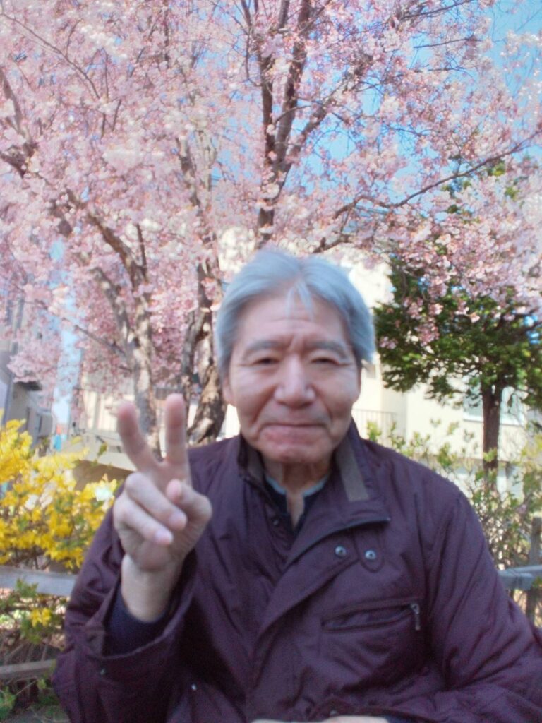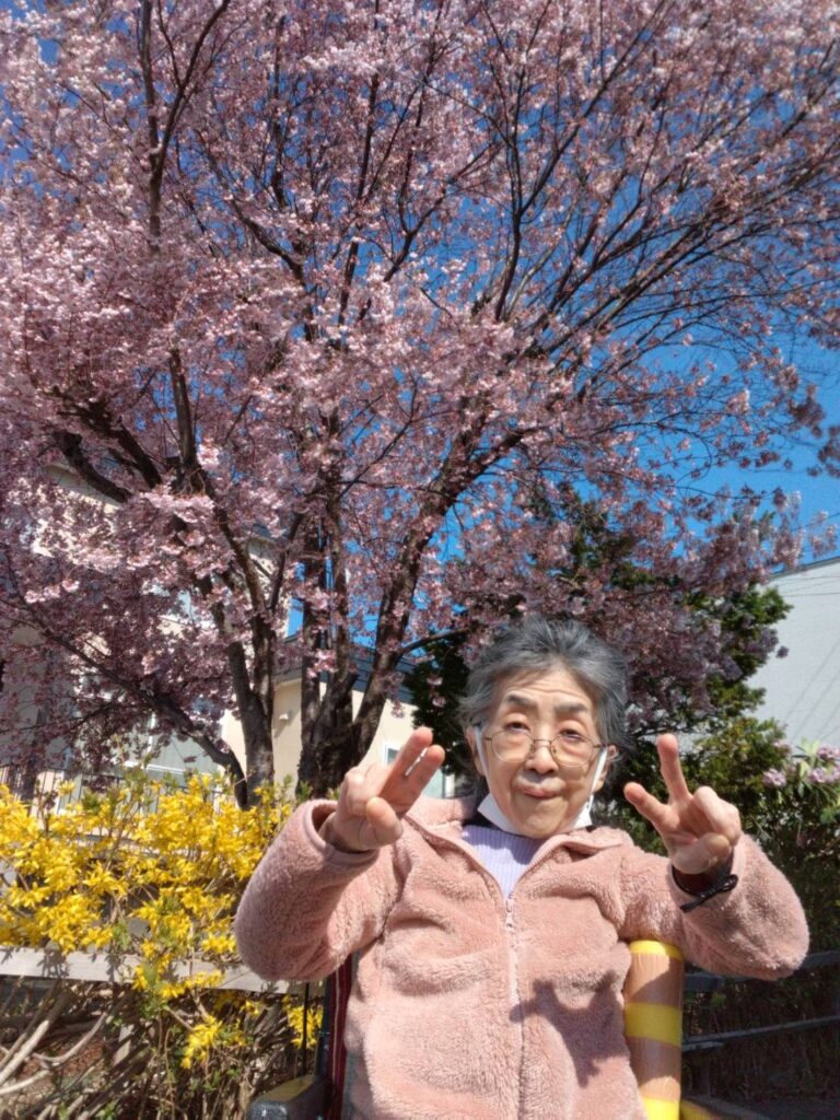 近くの公園に桜が咲いていたので散歩途中に写真撮影です。暖かい陽射しもあり笑顔で楽しまれていました。